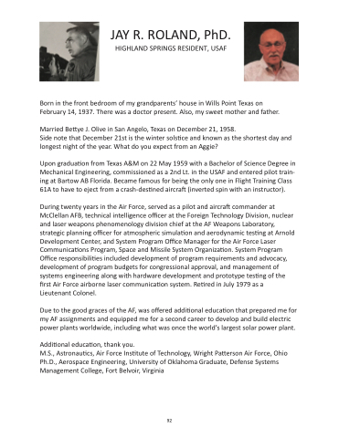 JAY R. ROLAND, PhD. HIGHLAND SPRINGS RESIDENT, USAF